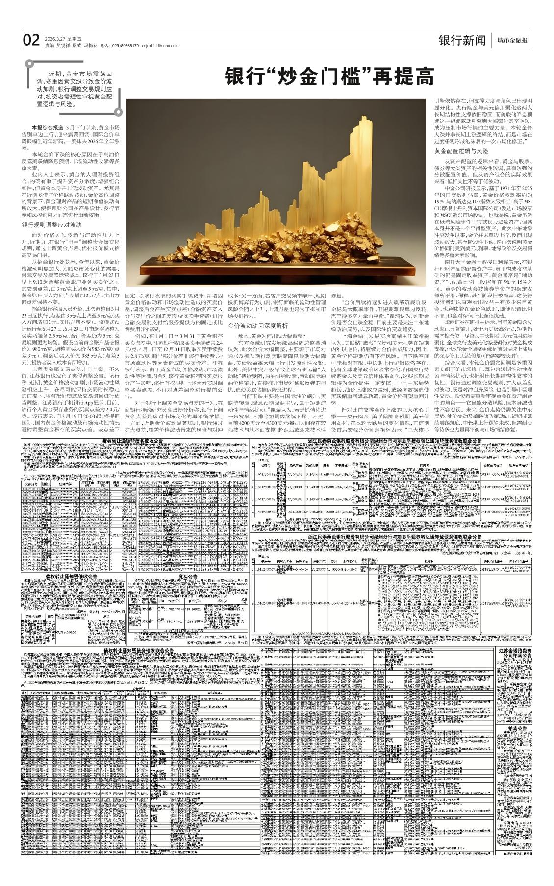 银行“炒金门槛”再提高
